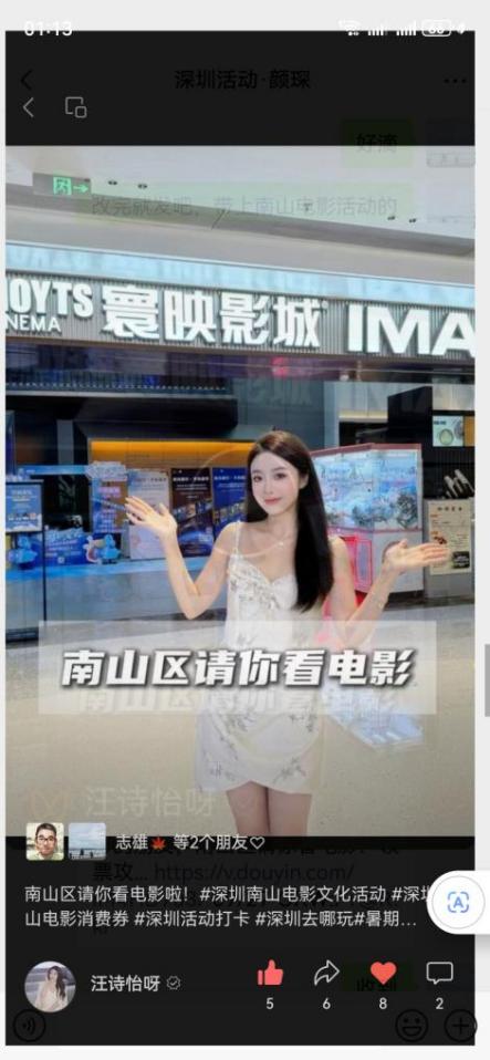 7月26日晚上,南山区在“南山文体通”微信公众号上派发了5000张电影消费券,短短不到半小时,所有券就被一抢而空,这次优惠活动深受市民热烈欢迎与响应。