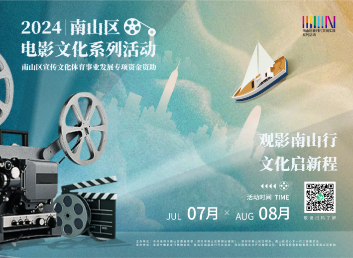 “观影南山行·文化启新程”——南山区2024年电影文化系列活动由中共深圳市南山区委宣传部(南山区新闻出版局)、深圳市南山区文明办、南山区关心下一代工作委员会主办,深圳市电影发行放映协会、南山区出版发行行业协会、深圳招商文化产业有限公司、南山区参与活动影院承办。