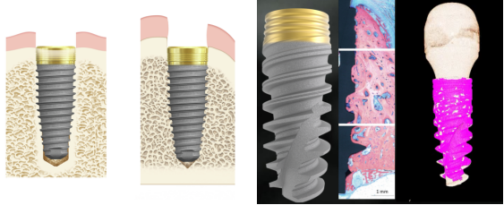 3. 种植体长度:植体的长度和宽度要比平常种牙的种植体更长更宽一些,这样种植后会更稳定一些。