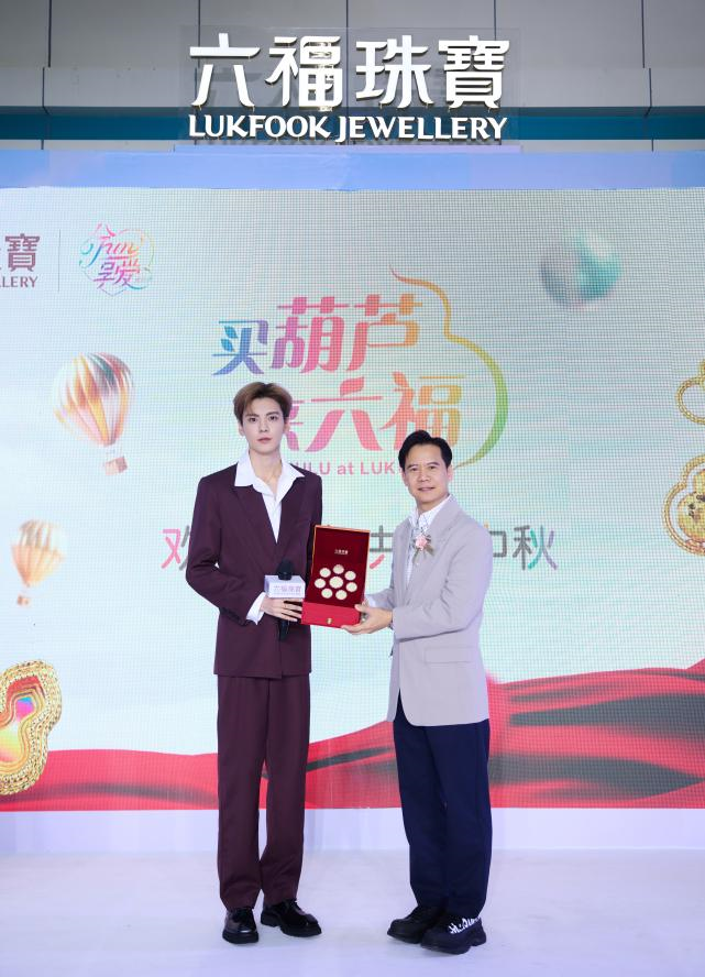 六福珠宝生日月恰逢中秋佳节,为庆祝这一重要时刻,六福集团高级业务总监张卓坚先生专程于香港远赴而来,为六福珠宝FUN享爱大使毕雯珺送上“幸福美满”七星伴月足金礼盒作为中秋挚礼,也纪念此次特别的合作。此款礼盒将皓月幻化成金光闪闪的足金月饼,镌刻「欢乐」、「好运」、「如意」、「多福」、「发财」、「团圆」、「健康」等美好寓意,弦月流转、七星围绕,祝福毕雯珺平安幸福,好运常伴的同时,亦祈愿未来的日子星途坦荡,光彩熠熠。张卓坚先生带领各位高层与毕雯珺举杯共庆,随即彩带齐舞,浪漫震撼的葫芦气球雨纷然而至,欢庆氛围顷刻拉满,现场来宾共迎“天降福禄”,同赏“金”彩瞬间。