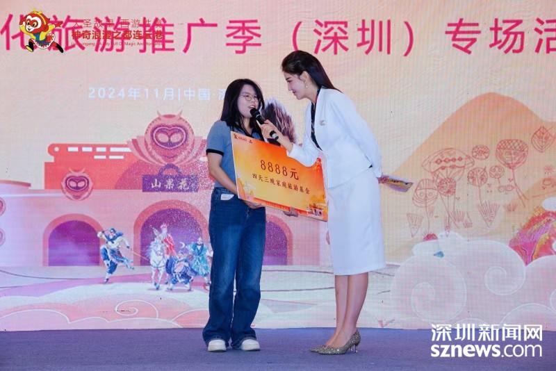 11月11日,深圳龙岗万达广场也迎来了2024连云港文化旅游推广季(深圳)专场活动。以《只此连云港》为主题的品牌推介让现场市民更加了解“孙悟空的老家、西游记的故乡”。金牌导游“蝈蝈小姐”从她的视角为大家分享了连云港人文历史、特色文旅资源,并推荐了连云港冬季游玩攻略和线路产品。活动中,还发布了连云港文旅优惠政策、连云港精品好住榜单,举办了文旅合作签约仪式等。随着活动的深入开展,现场氛围愈发浓厚,在场市民积极参与到与连云港的互动中。