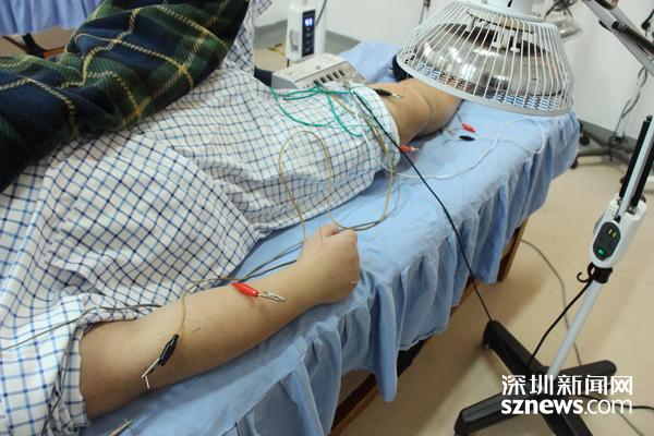 据悉,今年夏天,张先生在吃早餐的时候,突然出现意识不清醒,同事见状立即将其送往医院。就医诊断为脑出血,虽然通过紧急手术救回一条命,但是脑出血后遗症也让他面临不能言语和右侧肢体活动不利的障碍。看着儿子低迷的状态以及病弱的身体,在同乡人的介绍下,张母将儿子送到了深圳五洲中医院康复医学科。