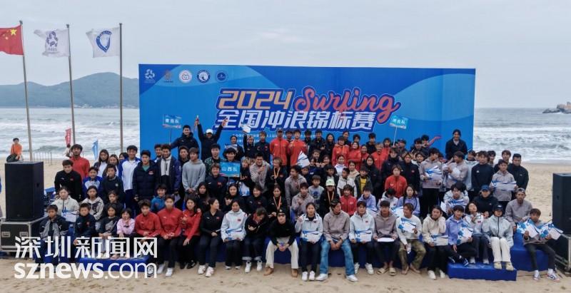 深圳新闻网2024年12月29日讯 12月27日,2024年全国冲浪锦标赛在汕头市南澳县收官。在为期八天的比赛中,来自全国各地的200余名冲浪健儿在青澳湾劈波斩浪、挑战自我,充分展示冲浪运动的激情与技巧。