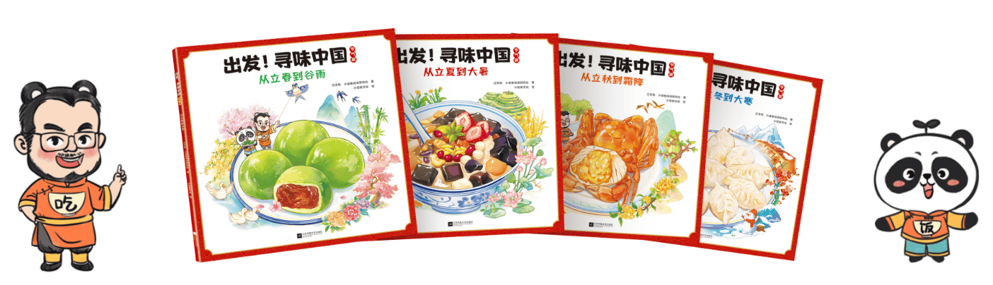 《出发!寻味中国 节气篇》系列图书,以二十四节气的美食为线索,分为春、夏、秋、冬四册。故事中,美食家吃老师和熊猫饭饭再次出发,引领孩子领略四季变换、理解“不时不食”的理念,探究节气美食和习俗文化,欣赏优美的古诗词,让孩子们在博大精深的中华美食文化中,沉浸式体验美食与文化的魅力。
