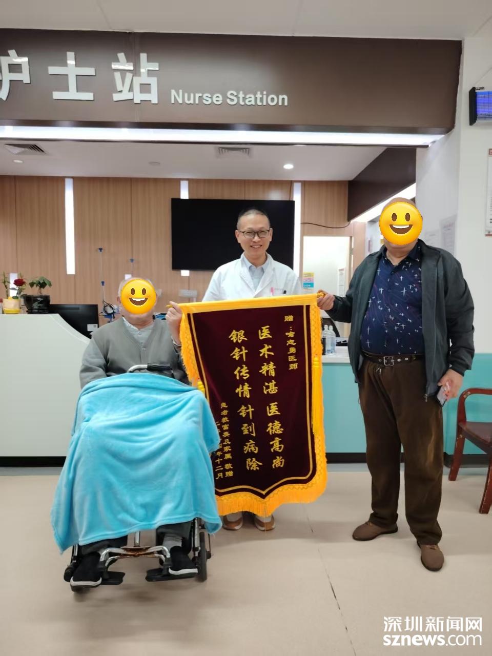 深圳新闻网2025年4月11日讯(记者 董非)“不用开刀、无需服药,几次治疗就让头晕消了大半,喻医生的小针刀确实灵!”69岁的张伯(化名)感慨道。深圳五洲中医院康复科住院部病房内,家属将一面印有“银针传情,针到病除”的锦旗郑重交到管床医生喻志勇手中——这位曾因严重头晕卧床数月的脑出血后遗症患者,如今已能自主行走,生活质量显著提升。