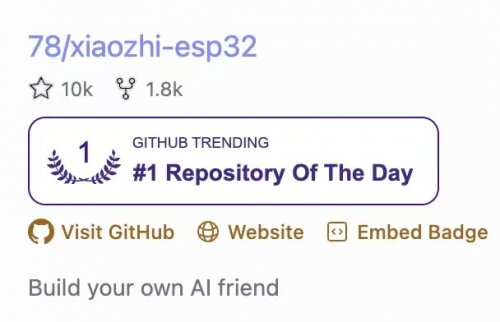 据了解,自小智AI开源项目在GitHub平台上线以来,小智AI迅速登顶全球趋势榜,吸引近4万名开发者参与生态共建,成为GitHub社区的万星项目和全球AI开源社区的“中国样本”。目前,小智AI已接入超10万台硬件设备,日对话量突破90万条,覆盖教育、办公、家庭等多元场景,展现出广阔的应用前景。