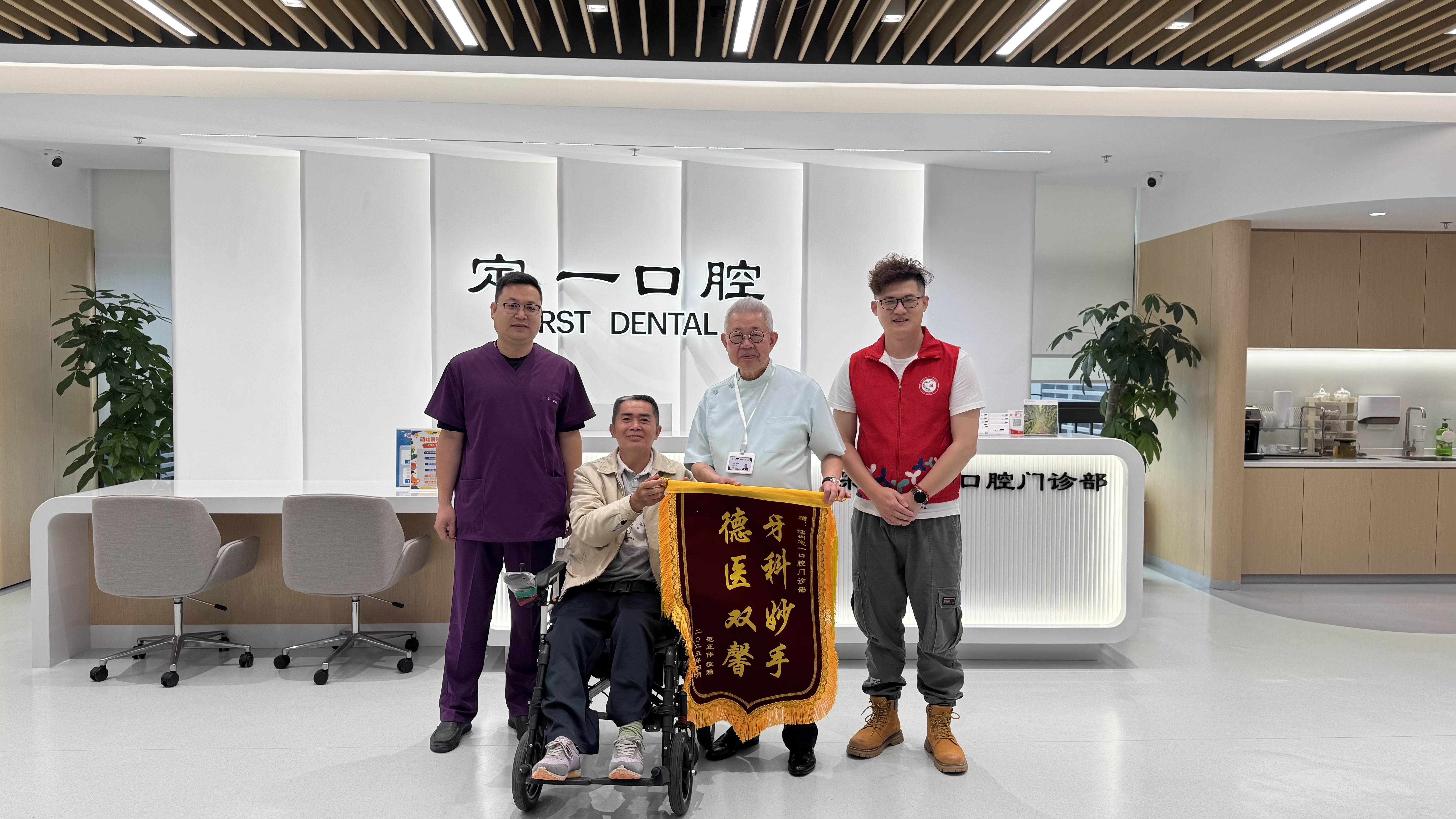 深圳新闻网2025年4月17日讯(记者 董非) 4月9日上午,深圳市坪山区坪山街道优秀志愿者范正伟坐着轮椅,将一面印有“牙科妙手 德艺双馨”的锦旗送至香港名医诊疗中心·定一口腔,向为他免除诊疗费用并定制义齿的医护团队表达诚挚谢意。这已经是他来定一口腔进行的第七次诊疗。这一暖心故事背后,是医者仁心与公益善行的双向奔赴。