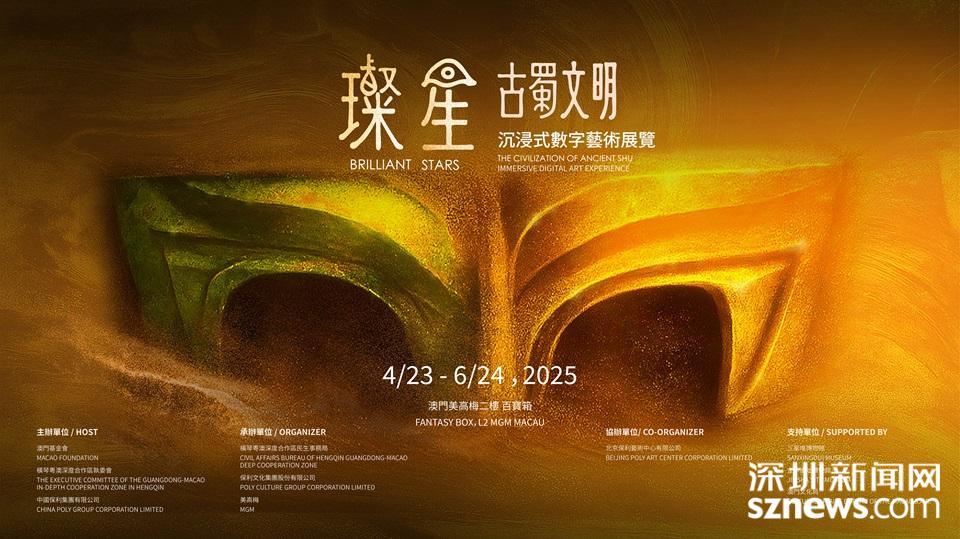 深圳新闻网2025年4月24日讯(记者 董非)4月23日,一场融合数字艺术、互动科技与考古叙事的沉浸式展览—— “璨星——古蜀文明沉浸式数字艺术展览”在澳门开幕,展览于4月24日正式面向公众开放,持续至6月24日。本次展览由澳门基金会、横琴粤澳深度合作区执行委员会和中国保利集团联合主办,由横琴粤澳深度合作区民生事务局、保利文化集团及美高梅共同承办。