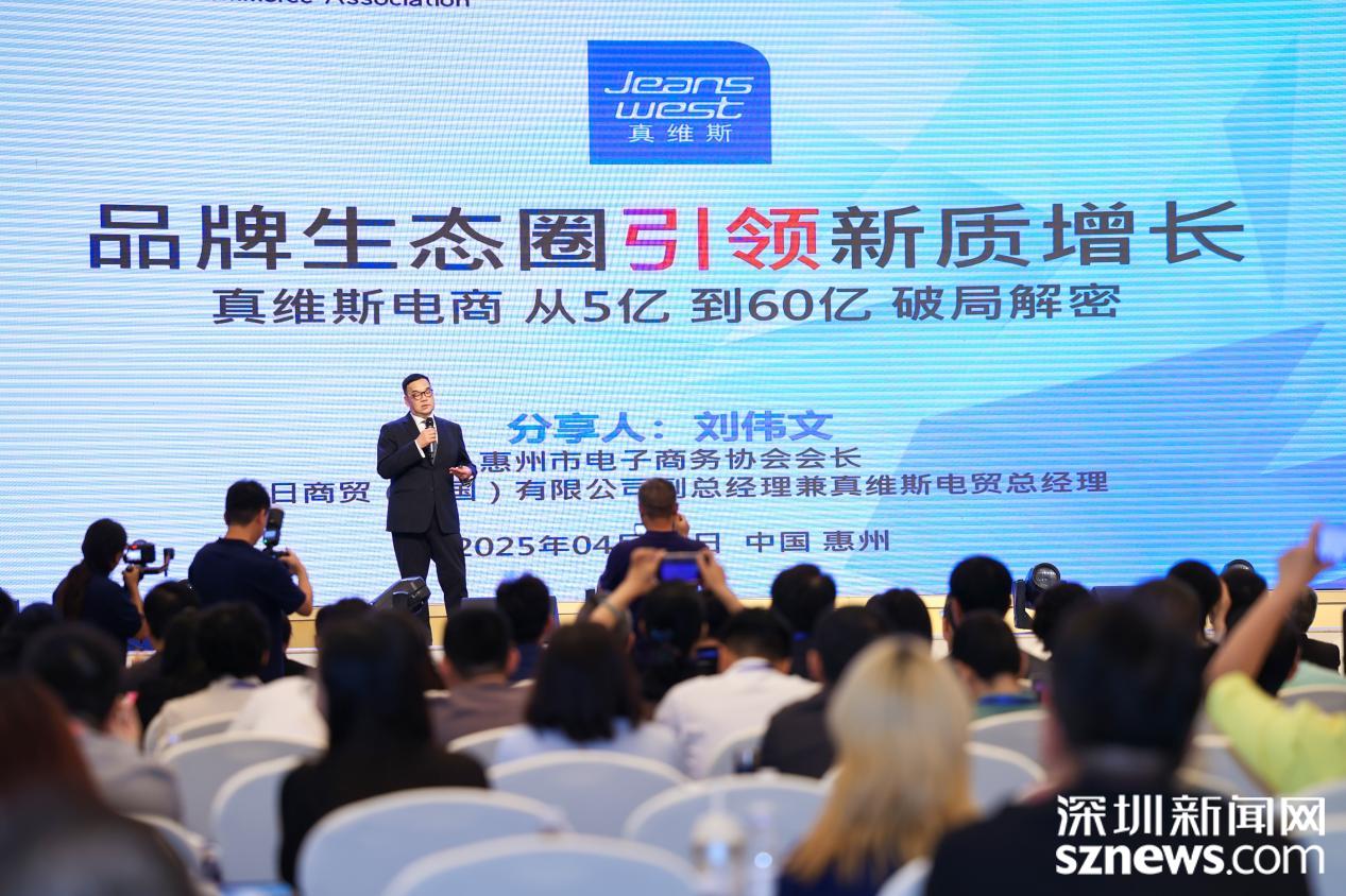 本次峰会以“新质增长,智启新章”为主题,云集国内电商行业领军人物、行业专家、电商企业代表以及电商从业个人,以主题演讲、高端对话、深度分享的形式,聚焦电商业态创新路径,探索新质生产力赋能电商行业发展。作为惠州市电子商务协会会员单位之一,真维斯近年来致力构建“品牌生态圈”的创新商业模式,成功实现“服装零售”向“经营品牌”转型,其成功经验备受行业瞩目。在2020年至2024年期间,真维斯全系列服装的全网销售确收从4.6亿增长至60亿,在全网服装销售增长缓慢的背景下,品牌实现了超过13倍的高速增长。