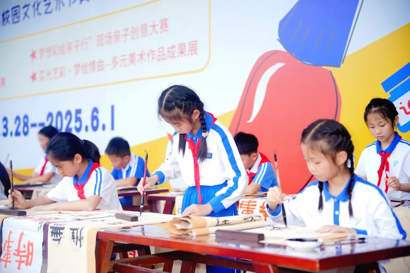现场亲子创意大赛活动成为开放周的一大亮点。亲子间相互协作,现场欢声笑语不断。孩子们在活动中充分发挥创造力,提升动手能力,家长们也在陪伴中增进了与孩子的情感交流。此项活动,不仅为学生提供了展示艺术才华的平台,更让他们在实践中感受美、创造美,培养了审美情趣和艺术素养。