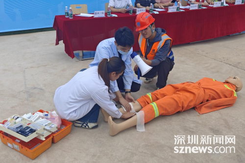 演练结束后,惠州市第三人民医院医护人员为在场人员进行止血包扎、心肺复苏、海姆立克法等急救知识宣教,进一步提升相关单位应对突发事故的救急能力。