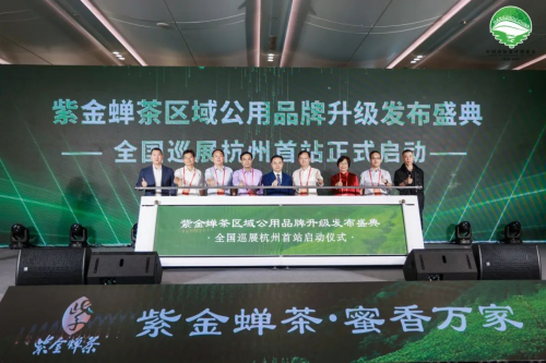 启动仪式上,政企领袖共同推动启动杆,宣告紫金蝉茶全国巡展杭州首站启幕,正式拉开“紫金蝉茶”区域公用品牌全国茶博会推广序幕,擎启“紫金蝉茶”发展新篇章。