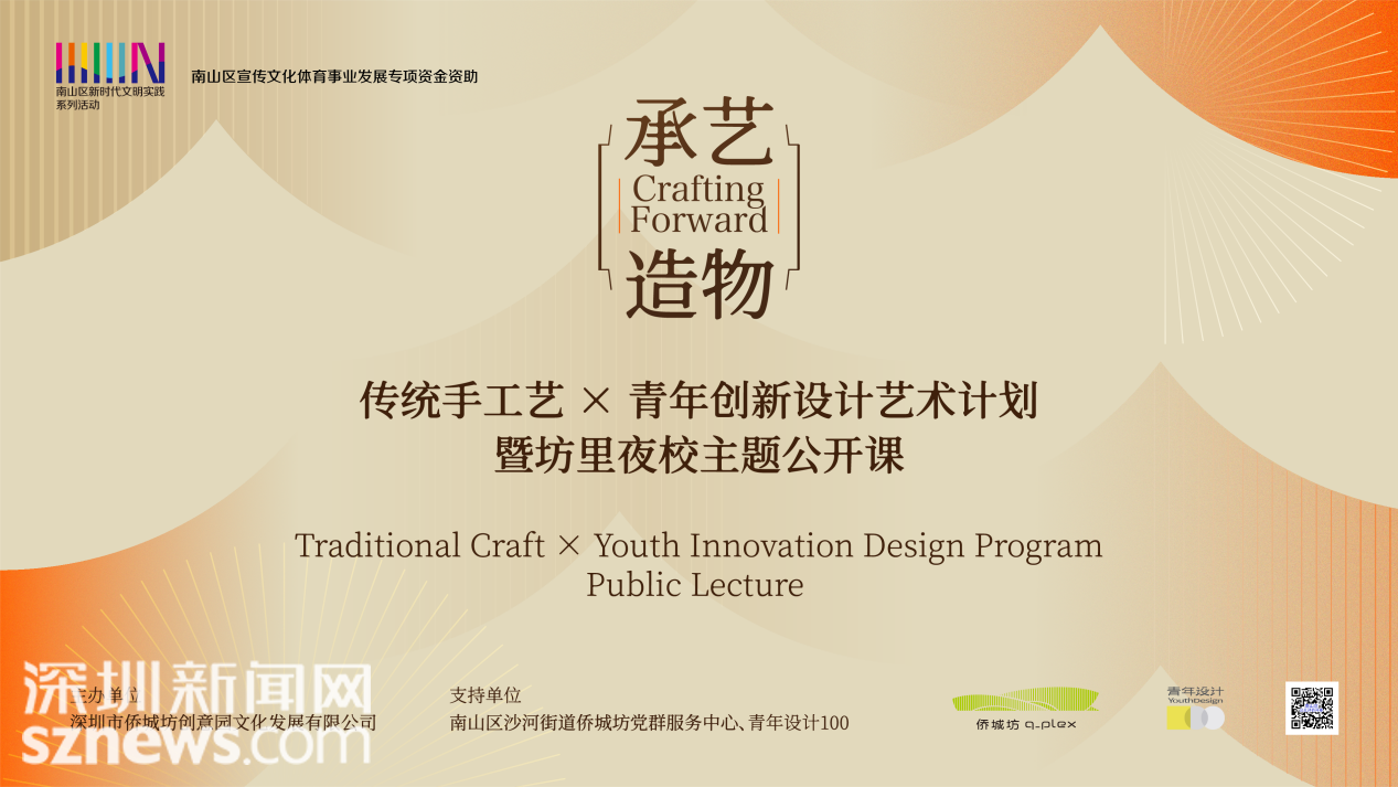 据悉,侨城坊还将于5月24日在巢・艺术中心一楼举办“传统手工艺x青年创新设计艺术计划暨坊里夜校主题公开课”。活动还特别邀请了中央美术学院教授李震、深圳市平面设计协会SGDA常务副主席孟申辉、青年艺术家张一鸣、设计师兼策展人刘烜等行业大咖齐聚一堂,与社区居民、企业代表等面对面交流,围绕传统手工艺的创新路径、青年设计力量如何赋能文化传承等议题展开深入探讨。