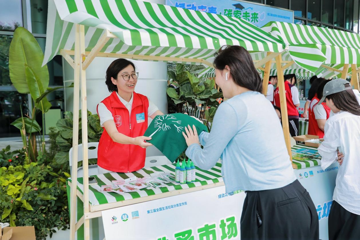 此外,现场的“垃圾分类拼图”“知识问答”等小游戏吸引众多学生参与,同学们在趣味游戏中学习和巩固垃圾分类知识。为鼓励同学们将闲置物品循环再利用,集市上还设置了“跳蚤市场”区域。同学们将电风扇、台灯、收纳盒等物品带到集市,让“带不走的青春记忆”通过“以物换物”开启新的旅程。