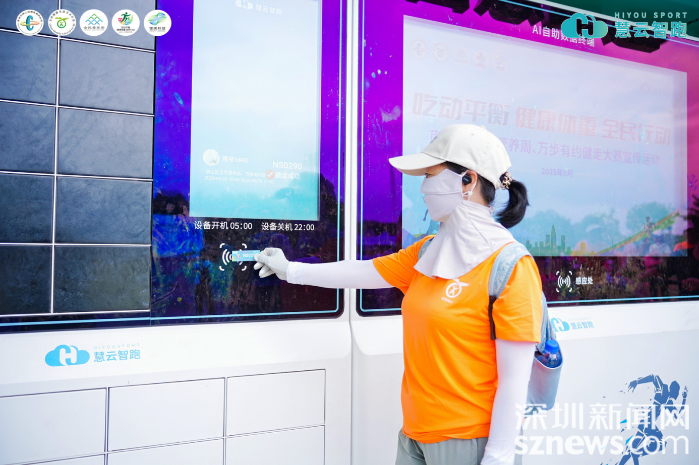 本次健走赛充分利用深圳湾慧云智慧跑道的技术优势,每位参与者均佩戴慧云芯片号码簿,沿途打卡信息实时显示在智慧屏幕上,为健走增添趣味互动。同时,参与者可在活动后即时通过慧云小程序查看健走数据、下载完赛证书,提升参与感和归属感。