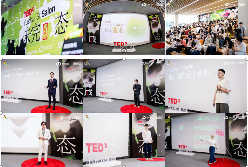 以“未完成态”为主题的TEDx Yuehai Street沙龙在设计公社B区举办,活动集结了《令人心动的offer5》带教律师骆嘉昀、Groundwork创办人阮文韬、DXD Studio主理人周圣典、“60s故事60s人生”发起人章舒茗、风筝艺术家张风野和全网600w粉丝博主“是你们的康康”共六位来自法律、建筑、艺术、新媒体等多领域的讲者,围绕“未完成”的美学勇气展开对谈。