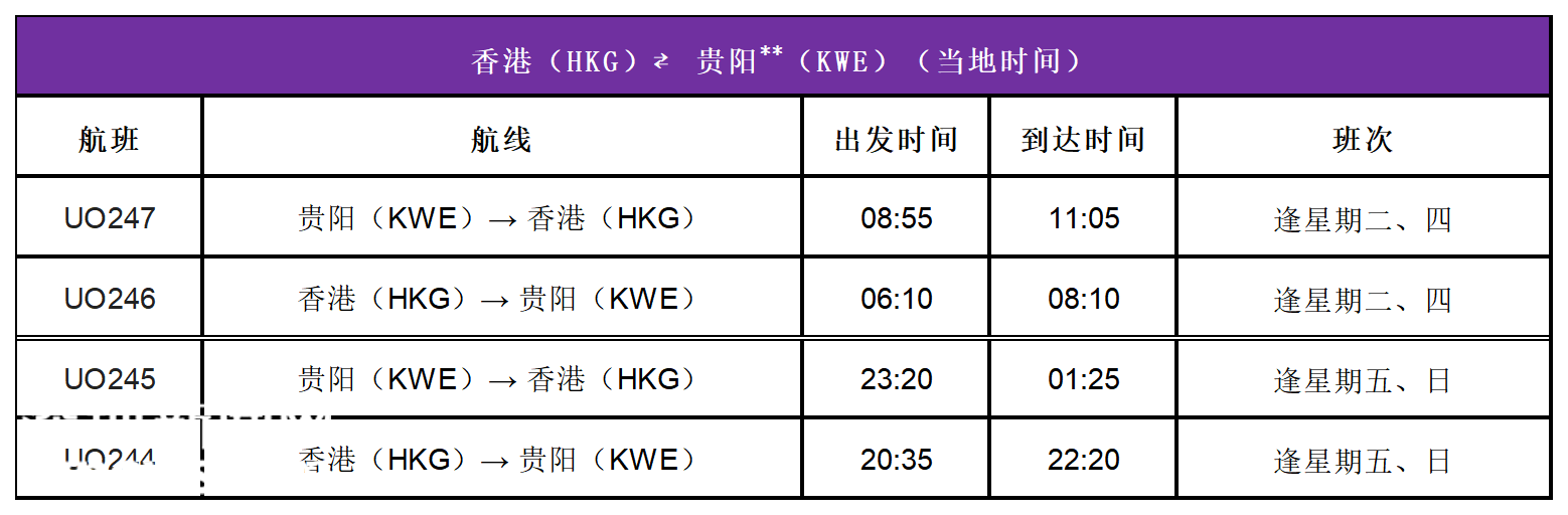 深圳新闻网2025年6月9日讯(记者 董非)七月盛夏,直飞「中国避暑之都」!香港快运航空(香港快运)9日宣布,将于2025年7月31日正式开通香港至贵州省贵阳市的直飞航线。该航线是香港地区唯一往返贵阳的航班服务,每周四班,由香港国际机场(HKG)直飞贵阳龙洞堡国际机场(KWE)。