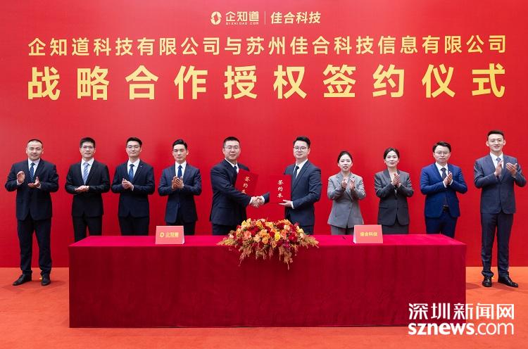 深圳新闻网2025年6月9日讯(记者 董非)6月8日,企知道与苏州佳合集团在苏州正式签署战略合作协议,企知道董事长夏华标与佳合集团总经理郑曼玲出席仪式。此次合作是企知道服务商模式在华东地区的又一重要布局。