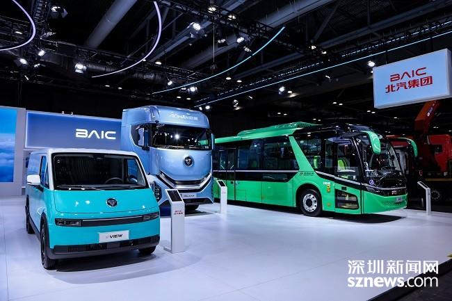 在“智变·新程”北汽集团展台,北汽集团旗下自主乘用车品牌和商用车品牌首次在国际化车展上同台亮相。北京越野BJ40 PLUS右舵版、新X55右舵版、北汽极狐阿尔法S5、北汽极狐阿尔法T5及享界S9增程版等5款面向国际市场的乘用车亮相;作为中国商用车第一品牌,北汽福田带来了风景i(eView)、电动通学车、欧曼银河9等3款重磅产品。