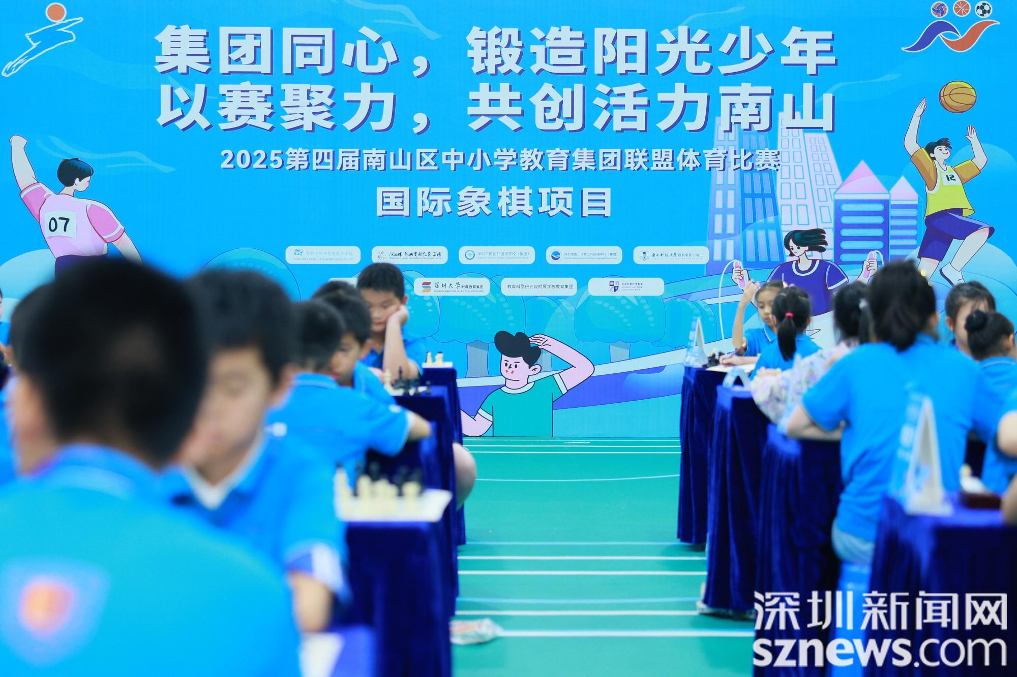 深圳新闻网2025年6月15日讯(记者 徐哲康 通讯员 张志梅)6月14日,第四届南山区中小学教育集团联盟体育比赛国际象棋项目在南山区第二外国语学校(集团)学府一小举行,小棋手们在黑白棋盘上展开激烈的智力博弈。