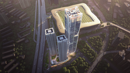 河套深港科技创新合作区东翼-1项目位于深圳市福田区,总建筑面积25.91万平方米,建设内容包括3栋塔楼,其中一单元为56层办公塔楼,二、三单元为两栋55层住宅塔楼。项目作为合作区东翼重点推动建设的首批项目,建成后将打造一个集高端商业、商务办公、居住空间和公共空间为一体的深港科技创新合作区综合体,将建设国际科技人才综合服务平台,提供国际人才引进一站式服务,为经备案的境外人士在深圳园区海关监管区域停居留及工作提供便利。
