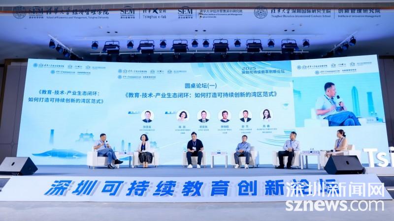 圆桌论坛(一)以“教育-技术-产业生态闭环:如何打造可持续创新的湾区范式”为主题,由深圳可持续发展研究院院长张亚龙主持。深圳报业教育传媒集团总编辑陈励、云天励飞副总裁郑文先、优必选科技产教融合总经理李晓明、阿里云公共事务部华南区总经理谢天、联合国开发计划署驻华代表处青年发展专家高鑫就教育创新、技术赋能、产业协同等话题展开分享,结合自身实践案例共同探讨了如何通过跨行业协作构建可持续创新的闭环生态。