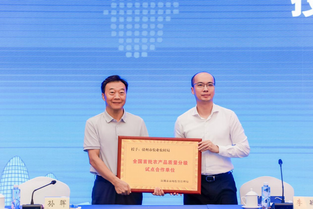 会上,深圳市市场监督管理局向赣州市农业农村局授予“全国农产品质量分级试点单位”牌,赣州市农业农村局介绍了赣州市绿色食品产业链有关情况,深圳市乡村振兴促进会产业协作项目对接平台首席运营官作了深赣产业协作项目对接平台推介。部分商协会、企业和科研院所代表作了交流发言。
