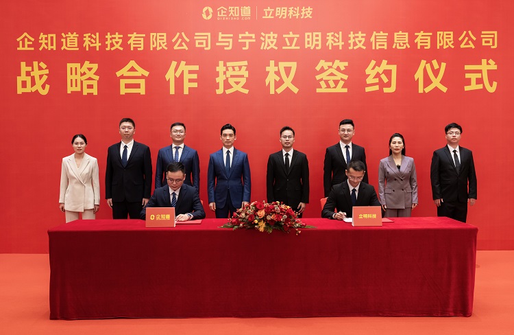 深圳新闻网2025年6月24日讯(记者 董非)6月22日,企知道与宁波立明集团在宁波签署战略合作协议,企知道董事长夏华标与立明集团总经理陆俊桦出席仪式。双方将联合推广企知道“科创空间”与“商贸空间”产品,助力浙闽企业突破创新与市场瓶颈。此次合作是企知道服务商模式在东南地区的又一重要布局。
