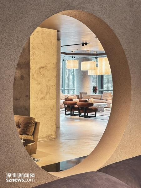 贯穿建筑内部的中国红流动金属镜面是首层空间的核心元素和灵魂所在。一楼展示厅打破常规,既陈列产品,又可转化为用餐区,旨在打造多维五感沉浸式体验。原装进口的意大利家具洋溢年轻活力,与当下追求松弛感的“千禧一代”生活理念不谋而合。