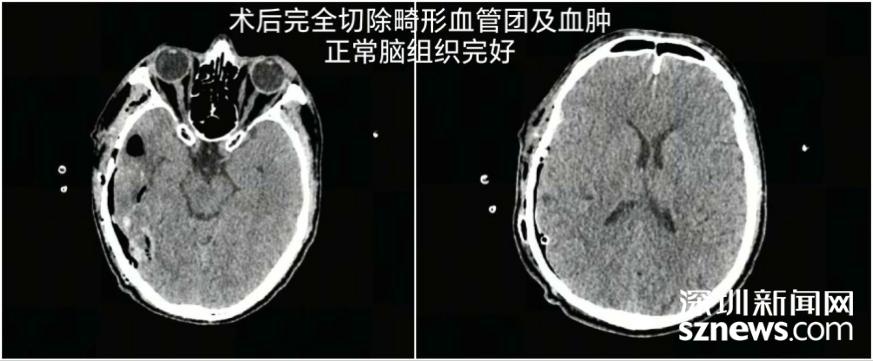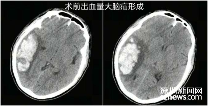 据南科大医院神经外科鲁春鹤主任介绍,患者当时右侧顶枕颞叶脑出血量高达约40mL,右侧大脑半球脑水肿、大脑镰下疝接踵而至,生命体征急速恶化,大脑里破裂的血管如同随时可能引爆的“定时炸弹”,情况岌岌可危。