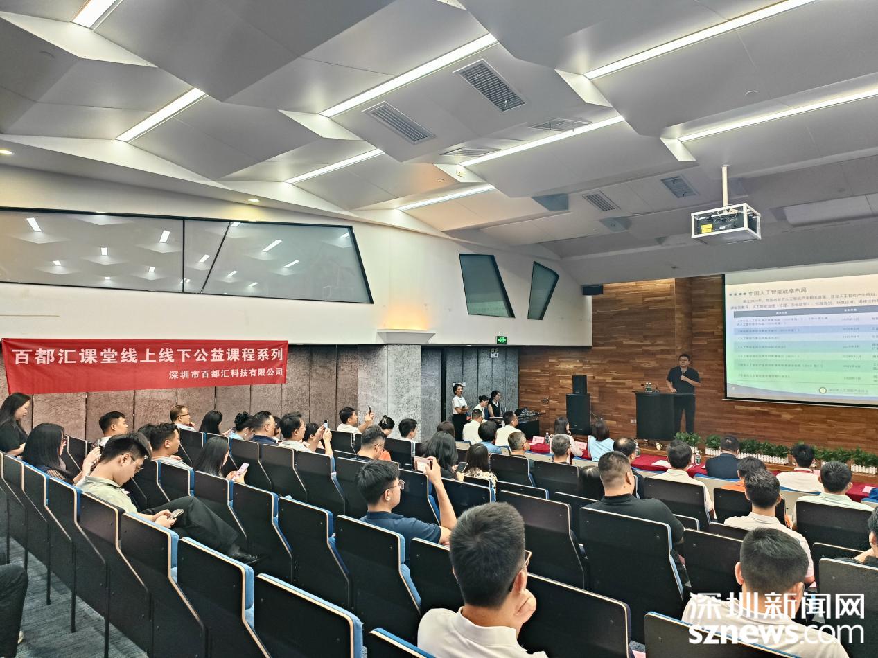 深圳新闻网2025年7月9日讯(记者 董非)2025年7月4日,由百都汇课堂主办的“线上线下公益课堂系列”在宝安高新奇产业园举办。园区座席气氛热烈,百都汇课堂“数智赋能 产业共融” 人工智能主题公益课程成功举办。活动聚焦人工智能技术应用与产业融合,吸引园区众多企业员工踊跃参与,为人工智能领域搭建起优质的交流合作平台。