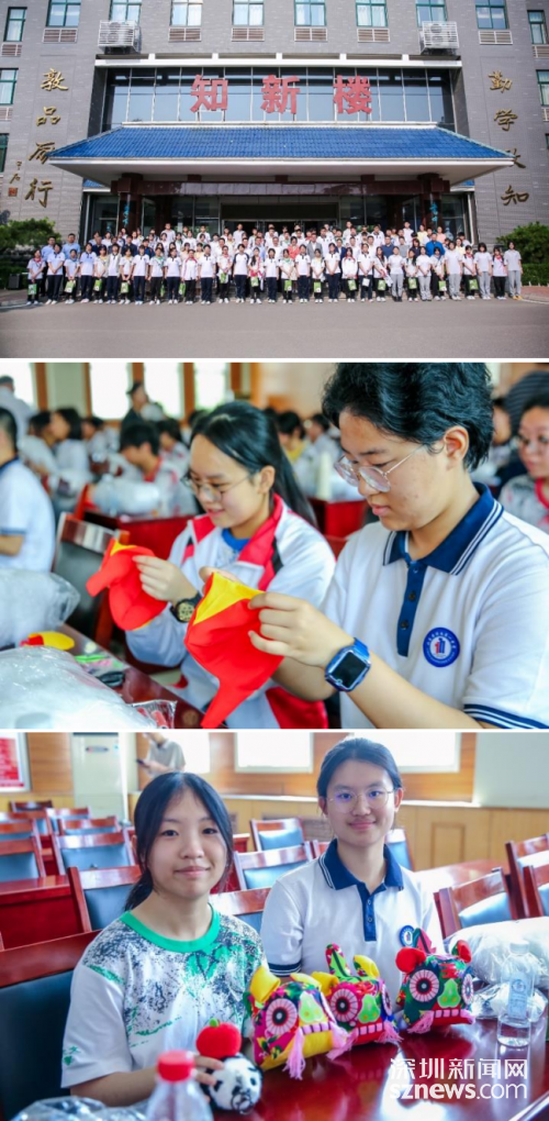 在绿色科普板块,学生参观中电莱芜风场,了解风力发电技术如何助力国家“双碳”目标。在社区公益板块,学生走进中电乡村振兴示范项目- 莱芜马杓湾 村史馆,体验传统文化保护与可再生能源发展的创新实践。在传承交流板块,学生参访姊妹学校济南第一中学,与当地学生共同体验校园生活,参与非遗工坊亲手制作传统手绣布老虎,练习太极拳,增进两地青年情谊与文化认同。