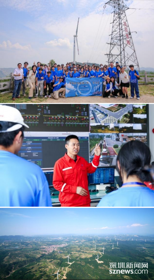 “新质探源之旅”带领学生参观中电莱芜风场。据介绍,中电在2013年开始在济南市莱芜区兴建风场 ,利用当地丰富的风资源生产零碳的风电。风场分三期分别于2014年、2017年和2020年落成投产,装机容量合共149兆瓦,属内陆山地风场。