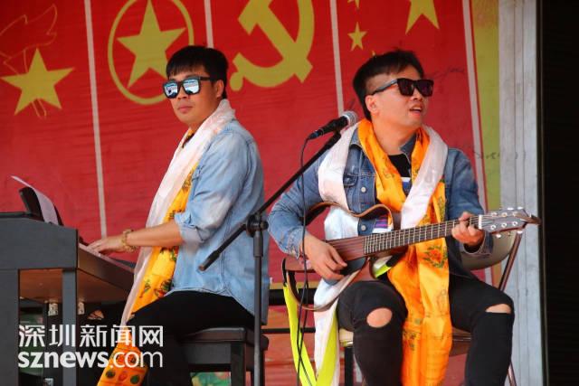 囍地组合的故事充满浪漫色彩。2015年,苏秋欢参与援藏支教,并将其中感悟写成第一首原创作品《蓝天》,赠予同样怀有“援藏情结”的梁蓝天,二人就此结下深厚友谊。创建组合后,他们用音符记录家乡变迁,将原创本土音乐带进学校教育,也用一场场“村晚”演绎扎根土地的创作初心。