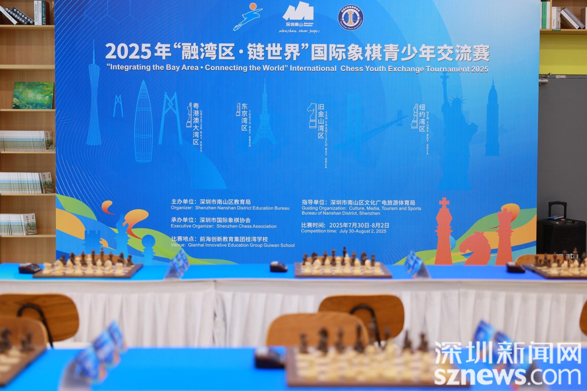 深圳新闻网2025年7月30日讯(记者 徐哲康)7月30日下午,2025年“融湾区・链世界”国际象棋青少年交流赛开幕式在前海创新教育集团桂湾学校举行。本次交流赛是一场面向全球青少年棋手的高水平国际象棋交流赛事,吸引了来自纽约湾区、旧金山湾区、东京湾区以及粤港澳大湾区的青少年棋手参与。赛事以国际象棋为核心载体,通过竞技交流、文化展示等环节,为各地青少年搭建起一个切磋棋艺、增进了解、建立友谊的平台。