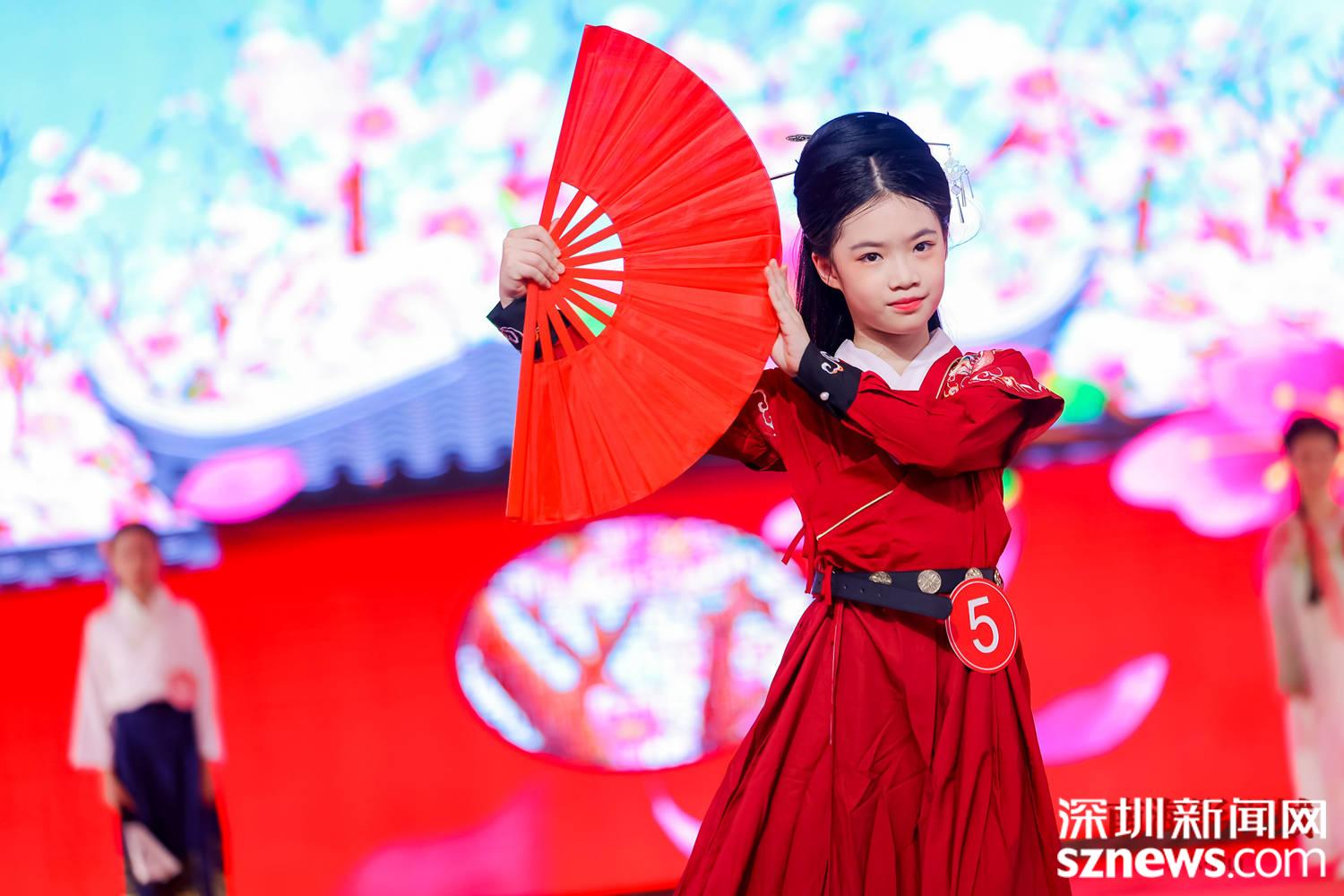执扇而立的翩翩公子温润如玉,仗剑起舞的少年侠客英气逼人,水袖轻扬的闺秀佳人婀娜多姿……小选手们以自信从容的姿态,将不同朝代的服饰特色演绎得淋漓尽致,仿佛在舞台上展开了一幅流动的中华服饰画卷。