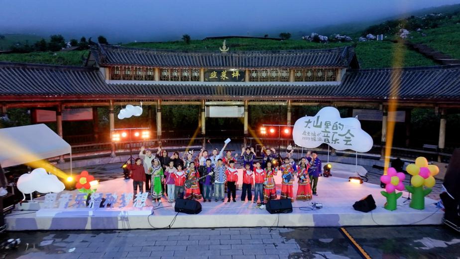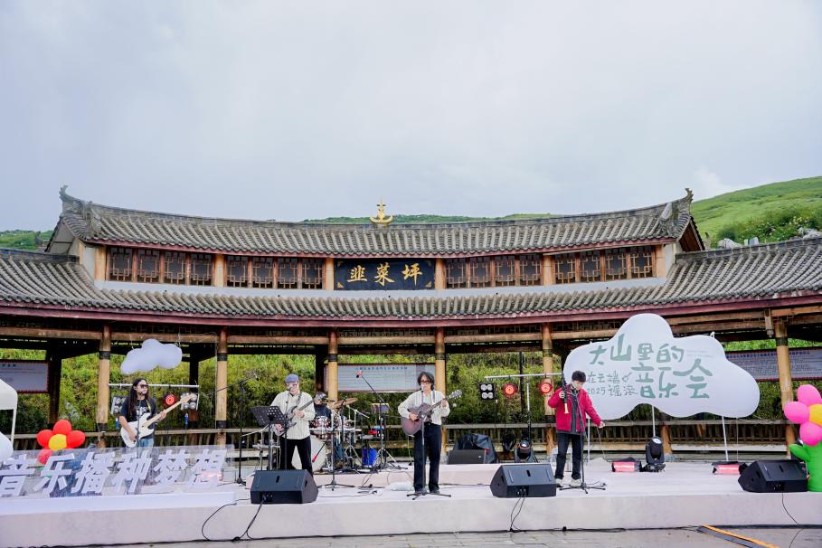 深圳新闻网2025年8月5日讯(记者 董非)微凉晚风拂过贵州屋脊成片摇曳的韭菜花,云海间回荡着别样旋律。近日,由深圳市华唱原创音乐基金会主办的“在云端谣滚·大山里的音乐会”在贵州省六盘水市韭菜坪启幕。这场以乡村儿童为核心的公益音乐盛宴,不仅是一次演出,更是一场跨越山海的音乐对话——通过“摇滚+民谣”的多元融合,为山区孩子搭建展示舞台,也让民族文化在音符中焕发新生。