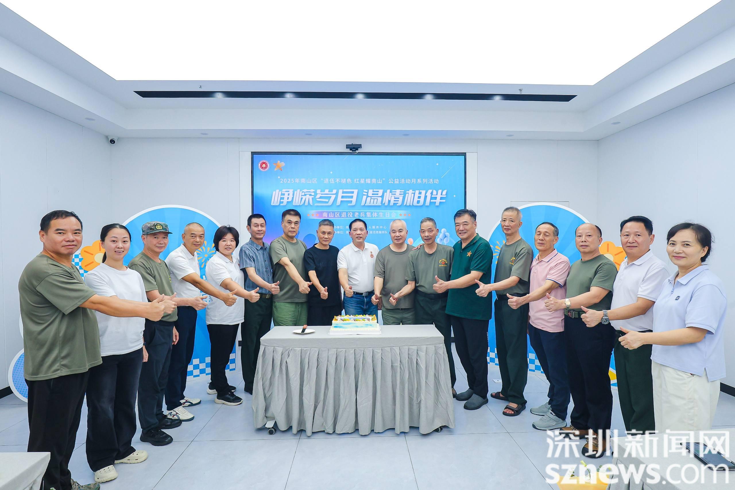 深圳新闻网2025年8月7日讯(记者 吴炳然 通讯员 林妍)8月4日,南山区退役军人服务中心多功能厅暖意融融,20多名退役老兵齐聚一堂,一场以“峥嵘岁月 温情相伴”为主题的集体生日会在此温馨上演。本次活动是公益月系列活动之一,旨在致敬老兵们为国家和社会作出的贡献,让他们在集体的关怀中感受温暖与喜悦。