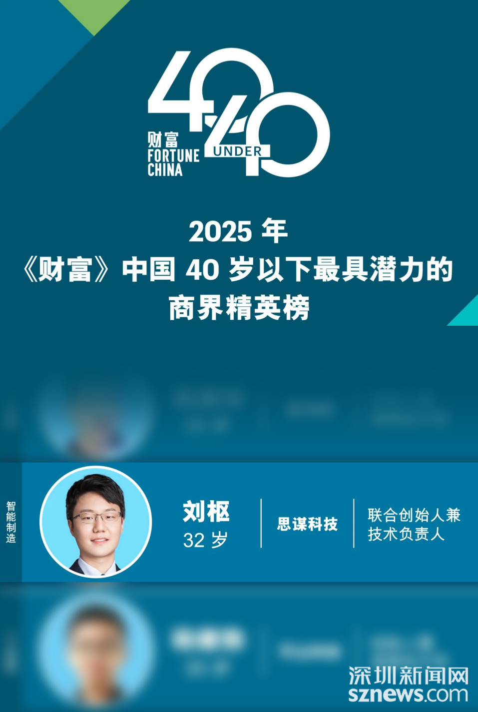 深圳新闻网2025年8月14日讯(记者 董非)8月12日,全球最具影响力之一的商业杂志《财富》发布2025年“中国40位40岁以下最具潜力的商界精英”榜单。思谋科技联合创始人兼技术负责人刘枢凭借推动人工智能技术创新与产业落地的突出贡献成功入选,成为中国年轻一代商界领袖的杰出代表。