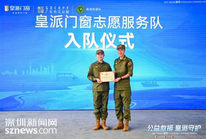 而“皇派志愿服务队”的成立,标志着皇派门窗公益之行从物资支持迈向深度参与。现场,“皇派志愿服务队”宣告正式加入南狮救援体系,南狮救援队队长马建华为皇派志愿服务队队长朱福庆颁发了聘书与队旗。随后,全体皇派志愿服务队队员庄严接受象征责任与使命的救援衔领章,将以全新身份投入公益救援,将“守护”的边界从千家万户延伸至更广阔的社会安全领域。