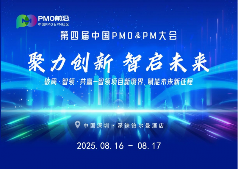 从开放交流的广阔平台,到实战案例的深度剖析,再到跨界融合的创新探索,第四届中国PMO&PM 大会为每一位参会者搭建起一座通往项目管理新境界的桥梁。8月16-17日,深圳・深铁铂尔曼酒店,诚邀您共赴这场项目管理领域的年度饕餮盛宴,一同解锁行业进阶密码,聚力创新,智启未来。