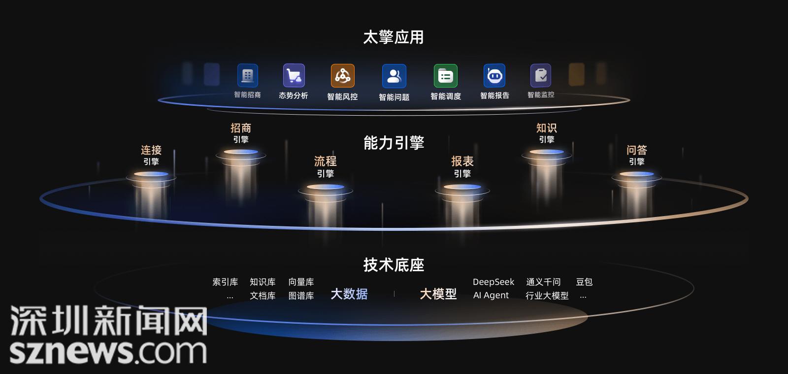 据悉,作为新一代AI技术能力平台,“太擎 1.0”致力于解决传统IT技术架构难以融合AI大模型的痛点,为企业提供连接引擎、问答引擎、报表引擎、流程引擎等丰富的AI技术能力引擎。通过搭建“让 AI 能看懂、会操作”的技术基建,“太擎 1.0”有效解决企业系统数据孤岛多、软件开发效率低的难题,加速企业数智化进程。