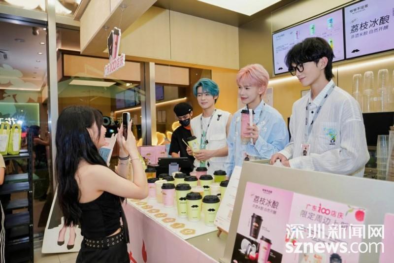 2025年8月15日起,爷爷不泡茶举行“百店同「粤」, 悦聚碰杯”广东100店庆,不仅为广东的消费者带来了荔枝冰酿、美美芭乐、黄皮旺气冰等近期上新的明星饮品,还组织了线下庆生快闪、网红一日店长等丰富多彩的线下活动,并制作了痛包、冰箱贴盲盒等潮流周边,让消费者在品尝爷爷不泡茶的同时,享受到“好吃好喝好玩”的体验。
