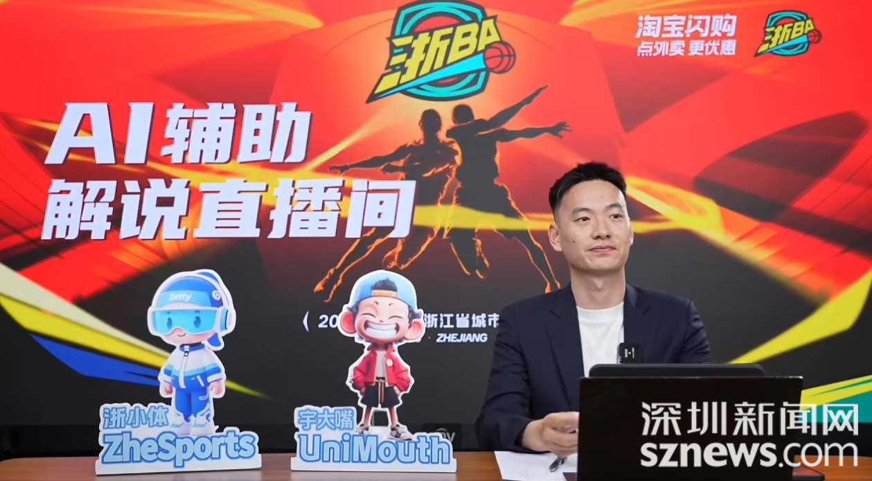 在首场比赛现场,“浙小体”与“宇大嘴”作为AI辅助解说员正式投入工作,与专业解说员王树坤默契搭档。依托先进的算法与强大的数据处理能力,AI系统不仅能够实时、精准地调取赛事各项数据,还能巧妙运用网络热梗等流行元素,使解说风格更为风趣诙谐,与解说员形成优势互补与良性互动。其通过提供专业的赛场技术分析、全面的背景信息解读等内容,显著提升了观众的观赛体验,让赛事观赏兼具专业深度与娱乐趣味。这一实践是浙江省在体育赛事数字化应用领域的重大创新突破,也是“浙BA”积极探索科技赋能体育赛事的全新尝试。
