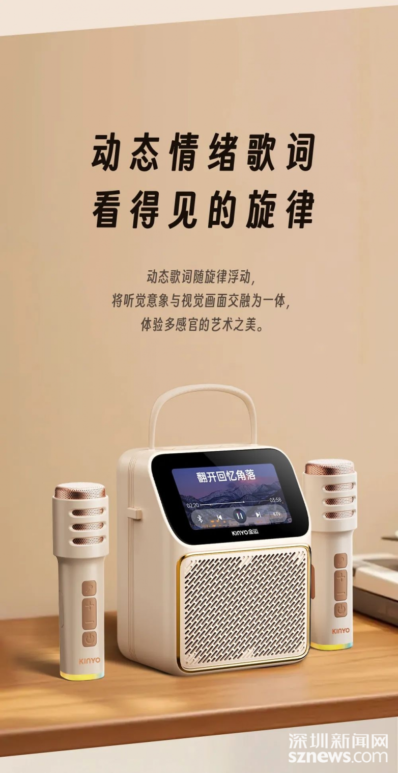 与此同时,金运并未忽视不同年龄层的需求。针对中老年群体,品牌打造了集“音响+麦克风+声卡”于一体的手持式K歌音响,从早期的金运手持K歌音响 H9到迭代后的 H100,不仅音质大幅度提升,还优化了操作逻辑,更加易用,帮助老年人群轻松享受音乐与K歌的乐趣。
