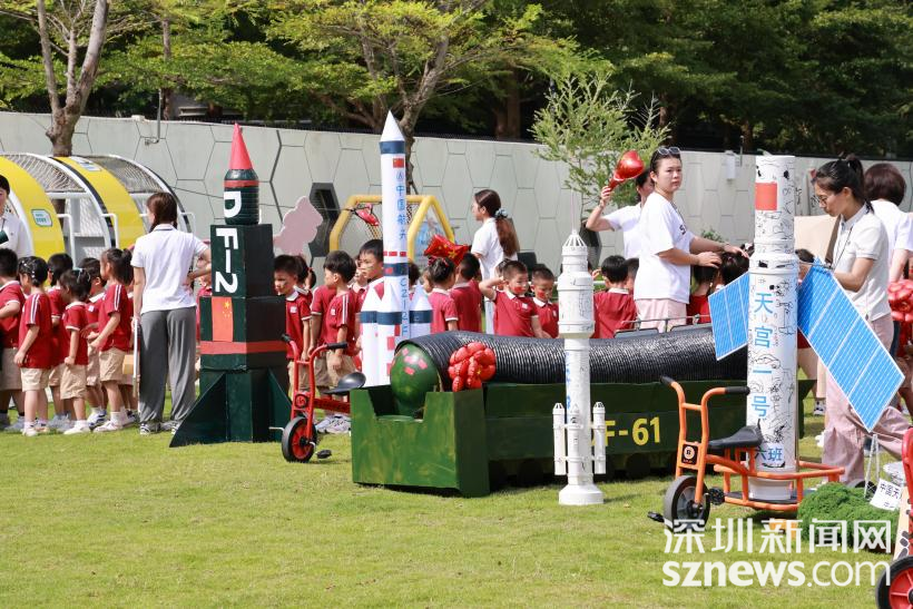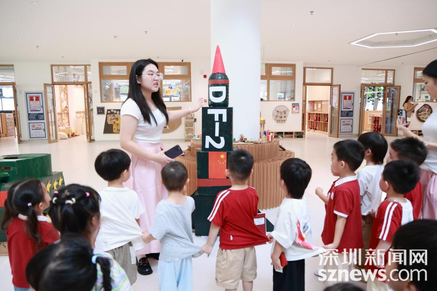 “老师,阅兵里的东风导弹好威风!我也想做厉害武器保护祖国!”国庆筹备时,中大班孩子对阅兵的记忆,成了活动设计的灵感源泉。幼儿园以“国防教育”为切入点,开展“我为祖国搭名片”家园创作活动,让孩子在实践中感知祖国强大,在协作中厚植家国情怀。
