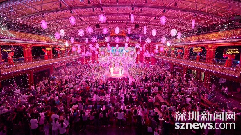 随着夜幕降临,欢乐持续升温。“全民街头卡拉OK”引发全场共鸣,场面温馨;“Darling迪斯科舞会”则在专业DJ的带动下,以经典旋律点燃夜晚激情。还有全新火秀《狂暴之火》以燃烧的火焰引爆全场气氛;《非遗双绝·天地焰》火壶打铁花表演以炽热的铁水点亮夜空。而作为国庆中秋双节限定节目,连续八晚亮相的千架无人机天幕大秀,通过科技与艺术的完美融合,在夜空中绘出节日祝福与动人图景,为游客的长假之旅留下了璀璨而难忘的收官回忆。