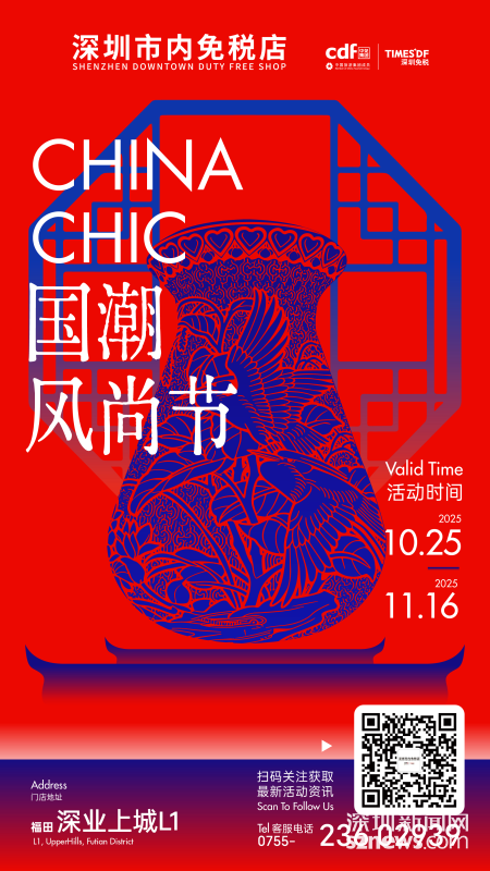 深圳市内免税店国潮主题区的开业蕴含深层时代意义,除了让广大市民感受国潮文化,也让国际旅客进一步触摸中国文化脉搏,为本土国潮品牌搭建走向全球的通道,赋能国潮产品成为世界名片。2025年10月25日至11月16日,深圳市内免税店特别策划国潮风尚节系列活动,以国潮主题区开业、双十一节庆为契机呈现国潮开业大酬宾、超值优惠券、小红书宠粉礼、小红书打卡福利等活动,更叠加深业上城满减优惠券,让游客与市民朋友见证全新国潮风尚打卡地、一同共赴文化消费盛宴。