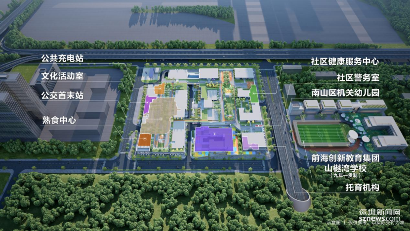 小区配套南山机关幼儿园及前海创新教育集团九年一贯制山樾湾学校(工程暂定名:兴海学校,目前建设中)。
