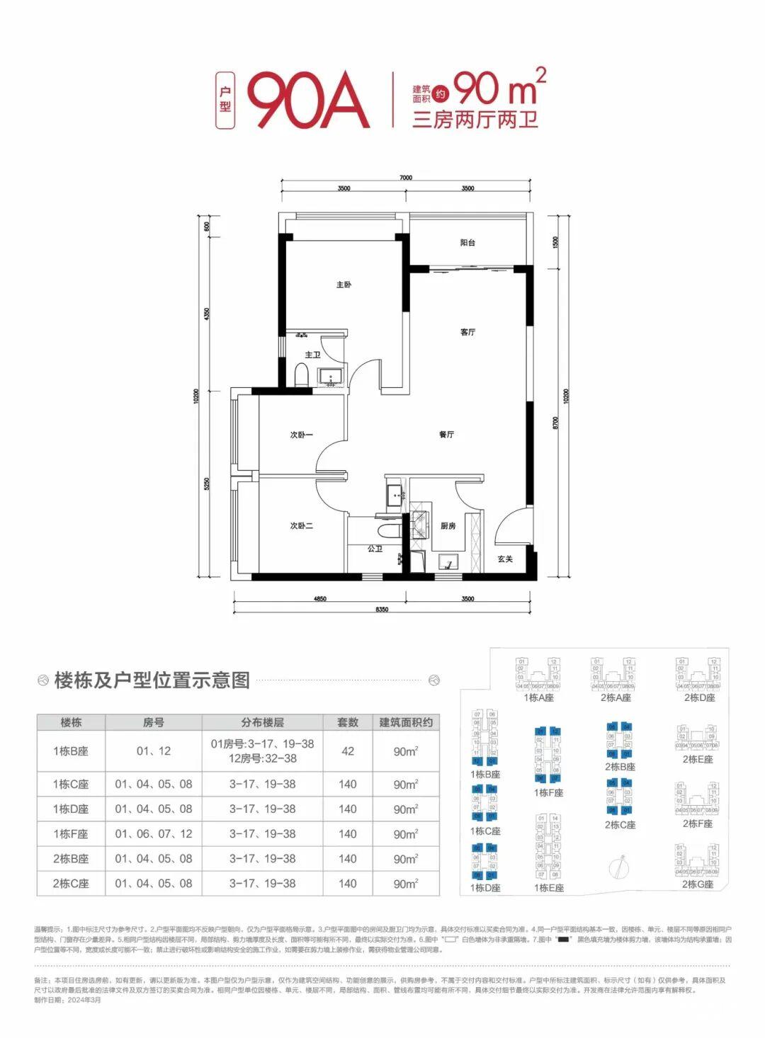 本批次住房共3466套,其中建筑面积70平方米左右的两房2629套,建筑面积90平方米左右的三房837套(包含93套无障碍户型)。